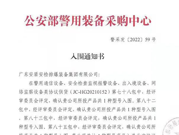 入圍丨新一期公安部警采中心協(xié)議供貨企業(yè)—廣東安盾安檢排爆裝備集團有限公司